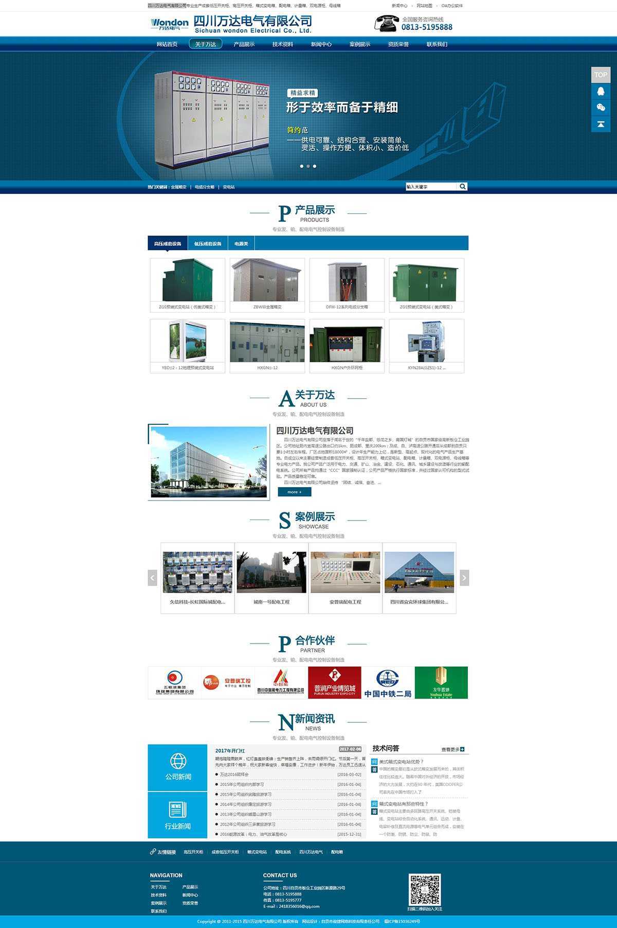 四川万达电气有限公司座落于闻名于世的“千年盐都、恐龙之乡、南国灯城”的自贡市国家级高新板仓工业园区。公司地址距内宜高速公路出口约1km、距成都、重庆200km;及成、自、泸高速公路开通后从成都到自贡只要1小时左右车程。厂区占地面积18000㎡,设计年生产能力上亿,是新型、高起点、现代化的电气产品生产基地。自成立以来主要经营制造成套低压开关柜、高压开关柜、箱式变电站、配电箱、计量箱、双电源柜、母线箱等专业电力产品。我公司产品广泛用于电力、交通、矿山、冶金、建设、石化、通讯、城乡建设与改造等行业的输配电系统。公司所有产品均通过“CCC”国家强制认证,公司产品严格执行国家标准,并经过国家认可机构的型式试验。产品质量稳定可靠。