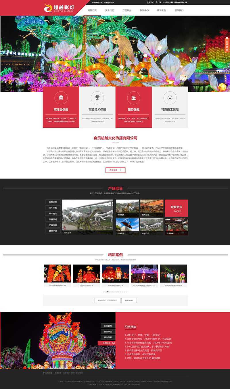 自贡超越文化传播有限公司,座落于“南国灯城”、“千年盐都”、“恐龙之乡”之称的中国历史文化名城——四川省自贡市。并以出色的品质深受各方面赞誉。一直以策划组织实施各类大中型文化艺术活动为主要业务,不断从多方面将自贡灯会的新、奇、特、美以全新的形象展示给世人,超越彩灯已走向全国,走向世界。公司为更好的传承自贡灯会文化传统,本着实事求是的态度,刻苦敬业的精神,专业高效的工作为客户提供优质的文化艺术产品;创造出值得客户信赖的文化品牌,实现超越客户需求的核心价值观。力争在巩固现有规模基础上进一步提升公司团队实力,以期达到在专业领域内具备全球性竞争力的文化创意企业。公司牢固树立以市场为主导,以管理为根本,以效益为核心,以艺术创新求发展的经营理念,在公司全体同仁的共同努力下,取得了迅速发展。
